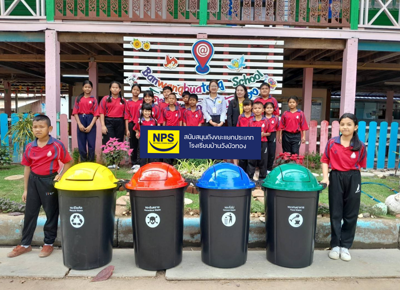 บริษัท เนชั่นแนล เพาเวอร์ ซัพพลาย จำกัด (มหาชน) มอบถังขยะแยกประเภทให้แก่โรงเรียนบ้านวังบัวทอง