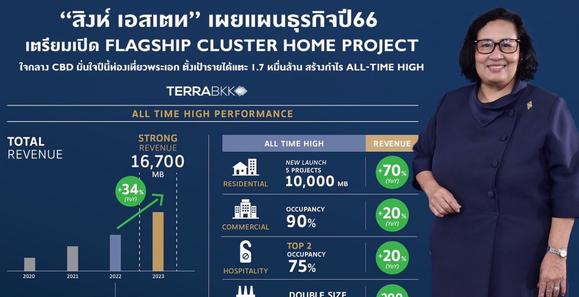 บริษัท สิงห์ เอสเตท จำกัด (มหาชน) หรือ ‘S’ เดินหน้ารุกธุรกิจปี 2566 ผ่านแนวคิด S EXCELS มุ่งสู่ความเป็นเลิศในทุกมิติ ตอกย้ำการดำเนินธุรกิจภายใต้วิสัยทัศน์ สร้างความหลากหลายที่สมดุล เพื่อการเติบโตอย่างยั่งยืน ดันรายได้รวมสูงขึ้น 34 เปอร์เซ็นต์ จากปีที่ผ่านมา