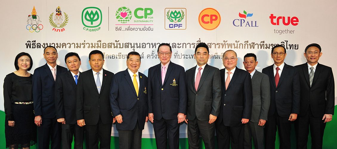 คณะกรรมการโอลิมปิคแห่งประเทศไทยในพระบรมราชูปถัมภ์ พลเอกยุทธศักดิ์ ศศิประภา ประธานกิตติมศักดิ์ คณะกรรมการโอลิมปิคแห่งประเทศไทย ศาสตราจารย์(พิเศษ) เจริญ วรรธนะสิน รองประธานกรรมการ และรองประธานคณะอนุกรรมการฝ่ายการตลาดและสิทธิประโยชน์  คณะกรรมการโอลิมปิคแห่งประเทศไทย พร้อมด้วย นายสังเวียน บุญโต รองผู้ว่าการการกีฬาแห่งประเทศไทย ฝ่ายบริหาร และนายขจร เจียรวนนท์ กรรมการบริหาร บริษัท เครือเจริญโภคภัณฑ์ จำกัด นายสุขวัฒน์ ด่านเสริมสุข ประธานคณะผู้บริหาร ธุรกิจอาหารและกรรมการผู้จัดการใหญ่ (ร่วม) บริษัท เจริญโภคภัณฑ์อาหาร จำกัด (มหาชน) นายสุวิทย์ กิ่งแก้ว รองกรรมการผู้จัดการอาวุโส บริษัท ซีพี ออลล์ จำกัด (มหาชน) นายสุภกิจ วรรธนะดิษฐ์ หัวหน้าคณะผู้บริหารกลุ่ม ด้านการพาณิชย์ บริษัท ทรู คอร์ปอเรชั่น จำกัด (มหาชน) ร่วมแถลงข่าวประกาศความร่วมมือระหว่างเครือเจริญโภคภัณฑ์ และคณะกรรมการโอลิมปิคแห่งประเทศไทยฯ ในการสนับสนุนด้านอาหารและการสื่อสารอย่างเป็นทางการตลอดทัวร์นาเมนท์แก่ทัพนักกีฬาไทยในเอเชียนเกมส์ 2018 ภายใต้แคมเปญ พวกเราคือ #ทีมชาติไทย ด้วยสโลแกน “ร่วมภูมิใจ ร่วมเชียร์ไทย ด้วยหัวใจนักสู้” โดยการแข่งขันจะมีขึ้นระหว่างวันที่ 18 สิงหาคม ถึง 2 กันยายนนี้ ที่เมืองจาการ์ต้า