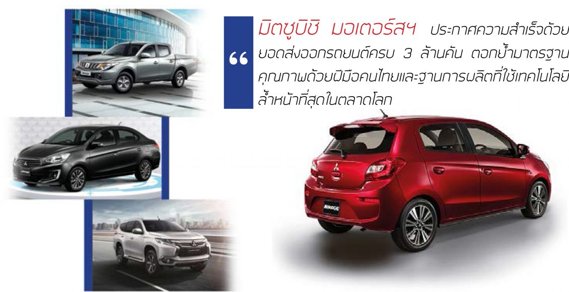มิตซูบิชิ มอเตอร์สฯ ประกาศความสำเร็จด้วยยอดส่งออกรถยนต์ครบ 3 ล้านคัน ตอกย้ำมาตรฐานคุณภาพด้วยฝีมือคนไทยและฐานการผลิตที่ใช้เทคโนโลยีล้ำหน้าที่สุดในตลาดโลก