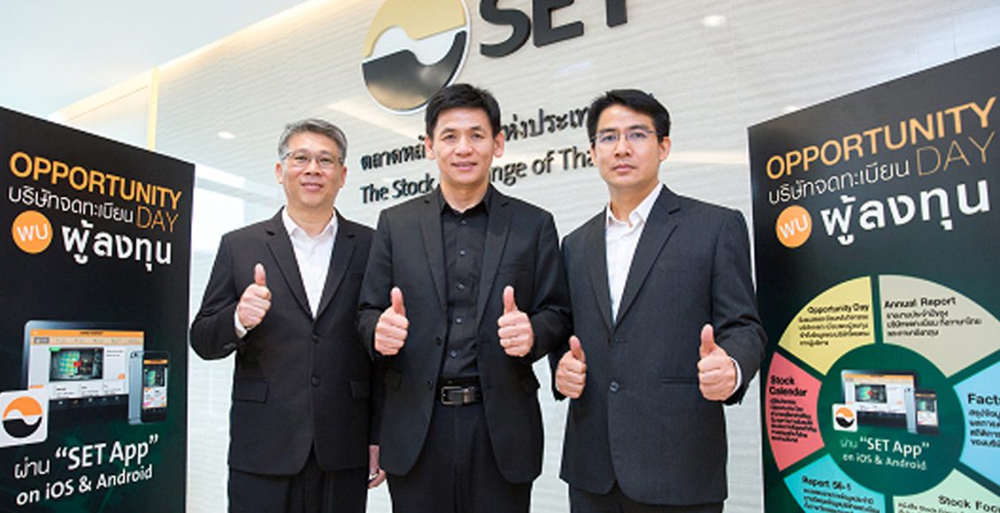 นายไพบูลย์ อังคณากรกุล (กลาง) กรรมการผู้จัดการ บริษัท อาซีฟา จำกัด (มหาชน) หรือ ASEFA ผู้นำด้านผลิตภัณฑ์ระบบกระจาย ส่งจ่าย และบริหารจัดการพลังงานไฟฟ้า พร้อมด้วยนายวิชัย สุนทรวุฒิกุล (ซ้าย)ผู้จัดการฝ่ายอาวุโส และนายพิชัย ปั้นจันทร์ (ขวา) ผู้จัดการฝ่ายการเงิน ถ่ายภาพเป็นที่ระลึกร่วมกันภายหลังนำเสนอข้อมูลต่อนักลงทุน นักวิเคราะห์ และสื่อมวลชน ในงาน Opportunity Day ประจำไตรมาสที่ 4/2559 โดย ASEFA เปิดเผยถึงมูลค่างานในมือแล้วราว 1,800 ลบ. มั่นใจรายได้ปีนี้เติบโต 10 – 15% ตามเป้าหมายที่วางไว้ งานดังกล่าวจัดขึ้น ณ ห้องประชุม อาคารตลาดหลักทรัพย์แห่งประเทศไทย เมื่อเร็ว ๆ นี้